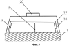После снятия слоя 17 фоторезиста проводят подзатворное окисление и формируют слой оксида кремния 18 толщиной 350 Å, а для формирования затвора 11 наращивают слой поликремния 19 толщиной 0,4 мкм (фиг.3) и легируют его диффузией фосфора. Затем проводят с помощью фотолитографии изготовление маски 20 (фиг.3), чтобы часть ее размещалась над частью островка кремния собственного типа проводимости для формирования затвора 11, расположенного как над частью островка Si собственного типа проводимости, так и над легированной частью островка. При этом операцию совмещения шаблона после нанесения фоторезиста проводят, делая привязку к краю островка 2 или к границе 16. В данном примере изготовления при размере маски 1,5 мкм ее располагали над границей 16 с перекрытием в сторону легированной части p-типа на 0,75 мкм (т.е. 1/2 L).