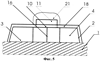 После травления поликремния 19 и удаления фоторезиста 20 (фиг,4) создают маску 21 (фиг.5) и формируют сильнолегированные области 3 и 4 соответственно истока и стока транзистора. Область 3 формируют в части Si собственного типа проводимости островка 2, а область 4 – в легированной части Si островка 2. Для этого проводят ионную имплантацию фосфора (Р) с энергией Е=40 кэВ и дозой D=700 мккул/см2 (фиг.5). Затем удаляют маску 21 и проводят повторную ионную имплантацию Р с энергией Е=40 кэВ и дозой D=100 мккул/см2 для создания слаболегированных областей 5 и 6 соответственно истока и стока при одновременном формировании внешних границ канала 7 (фиг.6). Активируют легирующие примеси при температуре Т=850°÷900°С, изготавливают межслойную изоляцию 15 из SiO2 и Si3N4 толщиной 0,35 мкм, а после вскрытия контактных окон в межслойной изоляции 15 формируют алюминиевые контакты 12, 13 и 14 к истоку, стоку и каналу 7 соответственно.