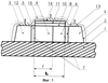 В процессе формирования канала 7 транзистора расположенный на подложке 1 из Al2O3 островок 2 слоя Si собственного типа проводимости (i-тип) с толщиной 0,3 мкм перед легированием канала 7 маскируют фоторезистом 17 таким образом, чтобы незащищенная часть островка 2 была пролегирована примесью p-типа проводимости (бором). При этом заранее определяется внутренняя граница 16 (фиг.2) запирающей части 8 канала 7. Легирование бором (В) проводят ионной имплантацией в 2-х режимах: