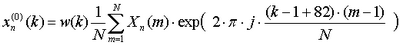 где Xn(m) обозначает точки комплексной констелляции, а w(k), k=1,2,…,349 – члены окна косинуса, возведенного в степень корня.