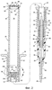 Следует понимать, что прилив 106 на внутренней поверхности плунжерной трубки 40 не обязательно должен по всей окружности соответствовать круговой канавке 108 трубчатого корпуса 32. Следовательно, прилив 106 можно, например, заменить группой расположенных по окружности отдельных проходящих внутрь выступов, которые расположены в зацепление с канавкой 108. Однако в предпочтительном варианте канавка 108 проходит вокруг всего трубчатого корпуса, чтобы зацепление с возможностью сдвига между плунжерной трубкой 40 и трубчатым корпусом 32 не требовало поворота специально для совмещения двух деталей. Прилив 106 и канавка 108 предпочтительно имеют такую конфигурацию и размеры, что усилие, необходимое для сдвига прилива 106 из зацепления с канавкой 108 проталкиванием плунжерной трубки 40 далее вниз в футляр 12, превосходит поджимное усилие, прилагаемое к узлу 14 иглодержателя сжатой возвратной пружиной 16, и дополнительное усилие, которое действует по направлению вверх на иглу 34 в ходе процедур введения катетера. Внутривенный катетер 20 можно установить на наконечник 26 футляра 12 перед вставкой узла 14 иглодержателя и плунжерного узла 18 в футляр 12. По другому варианту, плунжерный узел 18 и узел 14 иглодержателя (иногда называемый узлом крепления иглы) можно собирать друг с другом перед вставкой в футляр 12. В предпочтительном варианте фрикционное зацепление между приливом 106 и канавкой 108, при их совместном зацеплении, является достаточным для того, чтобы узел 14 иглодержателя и плунжерный узел 18 можно было вместе вставить в футляр 12.