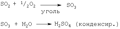 Удаления серы можно достичь, пропуская выходящие газы через слой активного материала, такого как активированный уголь и т.п. Адсорбция 80 г на активированном угле происходит в две стадии. В первой стадии SO2 каталитически окисляется на угле до SO3. Затем SO3 гидролизуется в присутствии водяного пара с образованием серной кислоты, которая конденсируется в порах угля: