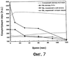 Фиг.7 представляет график зависимости концентрации серы от времени работы опытных производящих алюминий электролизеров, работающих с одним инертным анодом. Пунктирные линии на фиг.7 относятся к испытаниям, проведенным в отсутствие очищающих электродов, а сплошные линии относятся к испытаниям, проведенным с очищающими электродами на основе TiB2. Пунктирные линии на фиг.7 показывают уровни серы в испытуемом электролизере, работающем в отсутствие очищающего электрода, после введения 200 ppm серы (нижняя пунктирная линия) и последующего введения 300 ppm серы (верхняя пунктирная линия). В качестве источника серы вводили Na2SO3. Те же результаты были получены при использовании в качестве добавки Na2SO. Концентрацию серы поддерживали существенно постоянной или слегка повышали в электролизерах, работающих без очищающего электрода. Круглые точки на фиг.7 относятся к испытуемому электролизеру, подобному электролизерам, иллюстрируемым на фиг.2 и 3, включающим очищающий электрод на основе TiB2, на котором поддерживался электродный потенциал Е=0 В относительно потенциала алюминия. В этом электролизере концентрация серы снижалась в течение 2 ч от начального уровня, равного примерно 560 ppm, до примерно 110 ppm. Квадратные точки на фиг.7 относятся к испытуемому электролизеру, подобному электролизеру, показанному на фиг.4, с очищающим электродом на основе TiB2, погруженным в ванну металла. В этом электролизере концентрация серы снижалась в течение 2 ч от примерно 250 ppm до примерно 110 ppm. Треугольные точки на фиг.7 относятся к испытуемому электролизеру, подобному электролизеру, показанному на фиг.5, в котором очищающий электрод на основе TiB2 соединен с катодом снаружи. В этом электролизере уровень сернистых примесей снижался в течение 2 ч от примерно 160 ppm до примерно 120 ppm.