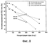 Фиг.8 представляет график зависимости КПД тока от концентрации сернистых примесей в электролитической ванне, демонстрирующий значительное снижение КПД тока с повышением уровней сернистых примесей.