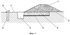 – для устройства: благодаря тому, что напорное сооружение в условиях многолетнемерзлых грунтов, включающее дренажное устройство и емкость для сбора фильтрационной воды, обеспечивающие возможность перехвата профильтровавшейся через тело и основание этого напорного устройства воды, содержит за емкостью для сбора фильтрационной воды не менее чем одну замораживающую траншею, расположенную на пути прохождения подземного фильтрационного потока, профильтровавшегося через эту емкость, на расстоянии от емкости для сбора фильтрационной воды, достаточном для сохранения в естественном состоянии целика между этой емкостью и замораживающей траншеей в период между зимними сезонами.