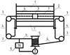 При снятых крышках теплообменника 2 через трубу 1 протягивают трос 4 один конец которого крепится к шарошке 3. Затем один конец второго троса 4, крепится к шарошке 3 с другой стороны. После чего система приводится в исходное рабочее состояние. Далее включается в работу тихоходная лебедка 5 и электронный блок управления 6 следит за положением шарошки 3 и дает команду на реверс при достижение шарошки 3 конца трубы 1. При необходимости через некоторое время для очистки трубы 1 теплообменника 2 от пыли посредством сопла в трубу 1 подается вода.