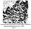 Причем дополнительно, при увеличении х100, определяют характер распределения рецепторов в опухолевых элементах рака молочной железы и при наличии участков с отрицательной и положительной экспрессией, а также участков с различной степенью экспрессии экспрессию считают гетерогенной, а при наличии в опухоли равномерного распределения рецепторов независимо от интенсивности окрашивания экспрессию считают гомогенной и при гомогенной экспрессии рецепторов к эстрогену в опухоли прогнозируют благоприятное течение заболевания, а при гетерогенной – неблагоприятное.