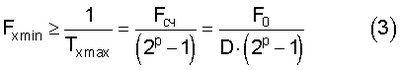 Нижний предел Fxmin диапазона измерения частоты этого устройства определяется по следующей формуле, полученной по методике вывода зависимости (1):