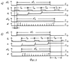 После фронта каждого импульса второй последовательности импульсов и окончания действующего во время этого фронта импульса образцовой частоты или окончания возникшего после этого же фронта импульса образцовой частоты на фронте очередного импульса образцовой частоты начинают выполнять (фиг.5-е) с тактом Ti, равным периоду То следования импульсов образцовой частоты, тактируемую последовательность операций. С целью компактного и наглядного представления временных диаграмм такты Т1-Т4, с которыми выполняется тактируемая последовательность операций, на фиг.5-е изображены на одной временной оси на двух чередующихся уровнях ординаты.