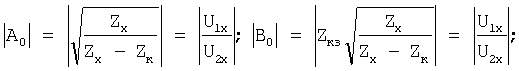 Затем имитируют разрыв в середине одной рельсовой нити и производят измерения сопротивлений или напряжений и токов при холостом ходе и коротком замыкании; расчетом определяют коэффициенты рельсового четырехполюсника А0, В0 или С0 по уравнениям: