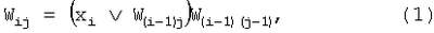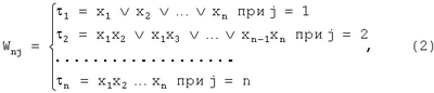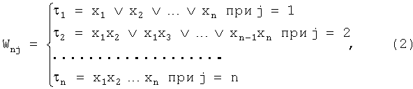 где есть номер момента времени tj (фиг.2); W(i-1)0=1; W0j=0. В представленной ниже таблице приведены значения выражения (1) при n=4.