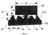 Поджигатель 10 (фиг.2) выполнен из поликристаллического материала на основе полупроводника с энергией запрещенной зоны превышающей 2 эВ. Такая величина запрещенной зоны характерна для высокотемпературных полупроводников типа карбид кремния, нитрид бора и др. За счет поликристаллической структуры поджигатель имеет шероховатую поверхность с множеством выступов с и е (фиг.4). Выступы имеют относительно малый усредненный шаг Sm и отклонение профиля по высоте yi от базовой линии. Величина D/Sm является критерием прозрачности контакта, где D – ширина контактного электрода в поперечном сечении в точке контакта с поджигателем, т.е. размер параллельный базовой линии (Б.Л.) поджигателя. Контактный электрод прижат к поверхности поджигателя и имеет электрический контакт с ним через выступы с и е, которые образуют с контактными электродами 11 и 12 некоторое количество точек контакта каждый со своим переходным сопротивлением. В принципе поджиг разряда может осуществляться и на гладкой поверхности, однако, наличие выступов на поверхности поджигателя и контактных электродах улучшают характеристики коммутатора. Электроды в зависимости от значения характеристического напряжения материала поджигателя могут располагаться на расстоянии друг от друга 1-5 мм. При этом указанная ширина контактного электрода не должна превышать значение среднего шага выступов на поверхности поджигателя более чем в 100 раз (D/Sm<100). Большие предельные значения допустимы для контактных электродов круглого сечения или ножевого типа, меньшие – для прямоугольного.