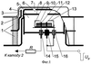 Расстояние между контактными электродами 11 и 12 имеет решающее значение для обеспечения надежного поджига. Выбор его в диапазоне 1-5 мм объясняется следующими факторами. Эффективность узла поджига максимальна при условии выделения большей части энергии импульса поджига в точках контакта, причем идеально – в одной точке. При расстоянии более 5 мм увеличиваются потери энергии в теле полупроводникового поджигателя, что требует увеличения мощности источника поджигающих импульсов и т.о. снижает эффективность устройства. Особенно это важно для поджигателей с высокими значениями сопротивления, в частности с нелинейной ВАХ. С другой стороны, из-за того, что подпружиненная конструкция не строго жесткая, а имеет некоторую степень свободы, расстояния меньше 1 мм в условиях работы прибора (изменение температур, вибрации, эрозия КЭ и пр.) трудно обеспечить технологически и на сроке службы возможны короткие замыкания контактных электродов. В процессе работы постепенно материал поджигателя 10 и электродов 11 и 12 (фиг.3) в местах контакта испаряется, однако за счет упругих свойств пружины 18 постоянство их контакта сохраняется длительное время. Так как эрозии в процессе работы больше подвергается электрод, имеющий отрицательный потенциал, то срок службы коммутатора можно продлить, изменив полярность электродов поджига.
