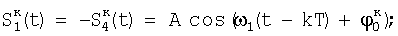 Принимаемый сигнал с МУМ, информация в котором может быть заложена как в фазу – минимальная фазовая модуляция (МФМ), так и в частоту – минимальная частотная модуляция (МЧМ), при отсутствии шума на любом символьном интервале может быть представлен одним из четырех элементарных сигналов, определенных на длительности T символа как