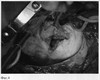 Срединная стернотомия, выделение внутренней грудной артерии слева, выделение магистральных сосудов, подключение аппарата искусственного кровообращения по схеме полые вены – аорта. После окклюзии аорты и полых вен вскрыта поперечным доступом аорта. Кровяная антеградная кардиоплегия в устья коронарных артерий, затем ретроградно в коронарный синус. Аортальный клапан изменен грубым кальцинозом, переходящим на фиброзное кольцо и межжелудочковую перегородку. С большими техническими трудностями клапан иссечен, при этом образовались дефекты фиброзного кольца и правого коронарного синуса. Принято решение имплантировать легочный аутографт с миокардиальным лоскутом для пластики дефектов корня аорты. Выполнено вылущивание легочного ствола с мышечным лоскутом выходного отдела правого желудочка.