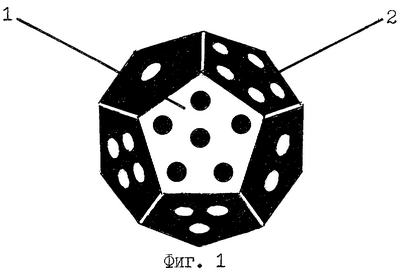 Известна игра, содержащая игровой элемент в виде “додекаэдра” на грани которого нанесена маркировка математическим символом со знаками сложения и вычитания так, что из трех сходящихся в каждой вершине граней одна отличается от двух других по знаку маркировки. При этом размещение граней, замаркированных математическими символами максимального значения, не определено /Патент Российской Федераций №2132711, 10.07.1999/ – прототип.