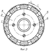 Для обеспечения возможности регулирования расстояния между абразивонесущими сегментами и достижения оптимального соотношения длины впадин к длине режущего выступа круг снабжен заменяемыми комплектами таких сегментов с различной протяженностью абразивонесущего слоя, например, состоящими из шести, восьми, десяти и более сменных сегментов. В зависимости от условий шлифования устанавливают тот или иной комплект сменных абразивонесущих сегментов 3, используя для определения их углового положения в круге риски 5, расположенные с заданным шагом на торцовой поверхности корпуса 1 (см. фиг.2).