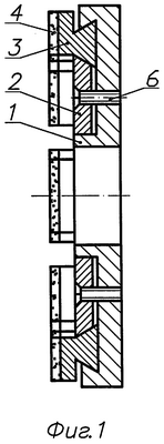 Сборный торцовый абразивный круг используют следующим образом. В кольцевой паз корпуса круга 1 (фиг.1) устанавливают сменные сегменты 3, совмещая соответствующие риски 5, расположенные на торце корпуса круга 1 и периферийной поверхности сегментов 3. Сегменты 3 прижимают к торцу корпуса и внутренней поверхности кольцевого паза диском 2 и закрепляют винтами 6. Круг балансируют в сборе с планшайбой и правят.