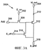Процесс пережигания двоичных разрядов для ПЗУ 16А изменяется в зависимости от того, является ли конкретный двоичный разряд пережигаемым двоичным разрядом или маскированным двоичным разрядом. На фиг. 3А представлена условная схема цепочки для определения состояния пережигаемого двоичного разряда в ПЗУ 16А. Цепочка 300А включает в себя первый разрешающий вход кодирования (E_on), обозначенный позицией 302, выход (id_out), обозначенный позицией 304, адресный вход (Add), обозначенный позицией 306, транзистор 308, резистор 310, транзистор 312, второй разрешающий вход кодирования (E_off), обозначенный позицией 314, транзистор 316 и заземление (p_gnd), обозначенное позицией 318. Адресный вход 306 подключен к одной из адресных шин 20А (показанных на фиг. 1). Первый разрешающий вход 302 кодирования подключен к первой разрешающей шине 20В кодирования (показанной на фиг. 1). Второй разрешающий вход 314 кодирования подключен ко второй разрешающей шине 20С кодирования (показанной на фиг. 1). Выход 304 кодирования подключен к выходной шине 20D (показанной на фиг. 1).