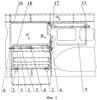В устройстве по патенту ЕПВ №102053, МКИ B60J 5/06, 1992, конструкция крепления сдвижной двери автомобиля включает три направляющие с дугообразными концами, обращенными в дверной проем. Верхняя и нижняя направляющие установлены вверху и внизу дверного проема и предназначены для взаимодействия с двумя узлами навески, расположенными с одной стороны двери, а средняя направляющая установлена между ними с внешней стороны кабины и предназначена для взаимодействия с узлом навески, расположенным с другой стороны двери – со стороны направления сдвига. Узлы навески двери включают каретки, каждая из которых установлена на своем кронштейне, закрепленном на соответствующей стороне каркаса двери, и имеют опорные и направляющие ролики, взаимодействующие со своей опорной поверхностью фигурной в сечении направляющей. Конструкция обеспечивает перемещение каретки среднего узла подвески по дугообразному участку средней направляющей с поворотом основания каретки вокруг шарнира при поперечном перемещении двери в направлении проема при ее закрытии совместно с работой верхнего и нижнего узлов подвески.