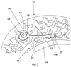 Фиг.2 показывает вид в перспективе сегмента мотка 10, находящегося на катушке 18 и содержащего три витка. В зоне свободного конца 16 металлическая полоса 12 пронизывает проушину 20 стопорного элемента 22. Проушина 20 находится в зоне выступа 14а и зацепляется с ним так, что образуется соединение с геометрическим замыканием.