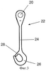 На фиг.3 показан предложенный согласно изобретению стопорный элемент 22 с проушиной 20, стержнем 24, крюком 26 и защелкой 28. При этом диаметр в свету проушины 20 и крюка 26 выбран так, что в смонтированном положении стопорного элемента 22 они полностью пронизаны металлической полосой 12.