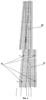 – 4-й такт: шток 8 нижнего гидроцилиндра 4 втягивается, груз 10 опускается с боковым смещением вправо по траектории, задаваемой рамками 11 устройства 1 и путем перекатывания ролика 7 вправо по подошве 9.