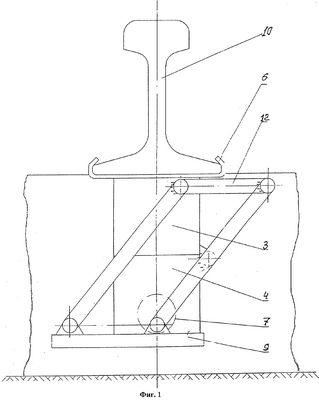 на фиг.1 – представлен общий вид устройства на первом такте: устройство подвешено к рельсу;