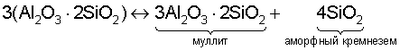 Примечание: составы №1 и №5 для внедрения на заводе не рекомендуются, так как в составе №1 не достигается архитектурный вид, а для состава №5 прочность ниже, чем известного состава (прототипа). Как видно из таблицы №4, состав предлагаемой керамической массы, соответствующей смесям №2; 3; 4 (см. табл.3), отвечает поставленной цели, так как в сравнении с прототипом наблюдается: а) увеличивается прочность на 2-12,8 МПа (или 16-68%); в) повышается архитектурная выразительность за счет приобретения более светлых тонов с оранжевым оттенком и исключения высолообразований; с) почти полностью исключается огневая усадка, а следовательно, уменьшается и степень общей усадки (на 32-36%). Физико-химическая сущность достижения цели объясняется совокупностью положительного действия на суглинок всех трех добавок конкретно: 1. “Скоп” выполняет роль не только выгорающей добавки, за счет сгорания целлюлозной составляющей, но и способствует трещиностойкости при сушке, так как волокна целлюлозы тормозят процесс быстрого испарения влаги в первый (опасный) период подогрева керамического сырца. В конечном счете это положительно сказывается и на прочности обожженного кирпича. “Скоп” более лиофилен в сравнении с древесными опилками, содержащихся в составе. Кроме того, “скоп” содержит 60-70% золы белого цвета, состоящей из метакаолинита Al2O3·2SiO2, который, как известно, переходит в муллит 3Al2O3·2SiO2 аморфный кремнезем в соответствии с реакцией разложения: Муллит увеличивает прочность, а аморфный кремнезем связывает растворимые соли щелочных и щелочно-земельных металлов в нерастворимые силикаты (см. Мороз Технология строительной керамики. – Киев. Вища шк. 1980. – 384 с., конкретно с.144 вверху.) Например: a) Ca2SO4+SiO2=Ca2SiO3+SO3 б) Na2SO4+SiO4=Na2SiO3+SO3 Образование стеклофазы способствует повышению прочности и предотвращению образования светлых пятен на поверхности керамики, а белый цвет золы от сгорания скопа способствует красножгущимся суглинкам приобретать после обжига светлые тона. Итак, зола от “скопа” способствует повышению прочности, сообщению светлого тона и уменьшению степени высолообразований. 2. Железосодержащий отход, введенный с пылью из циклонов от очистки поверхности стальных деталей или конструкций, выполняет одновременно роль плавня, так как содержит не менее 50% Fe2О3, и роль отощающей добавки, так как остальное (до 100%) приходится на долю алюмосиликатной составляющей (термообработанной опоки, состоящей из глины и кремнезема). Все плавни, в том числе и Fe2О3, увеличивают прочность суглинков за счет образования стеклофазы, состоящей из фаялита – FeSiO3. Стеклофаза, как известно, связывает кристаллические минералы типа муллита в прочный конгломерат. Количество Fe2O2, в составе принятых суглинков % дополнительно пополняется и введением керамзитовой вспучивающей глины, содержащей в сравнении с суглинками 1,5-2 раза больше этого оксида. Следует заметит, что новизна увеличения прочности керамических изделий заключается не только в действии плавня Fe2O2, но и в армирующем действии микрочастиц стали, то есть предлагаемый состав керамической массы позволяет получить дисперсно – армированный микрочастицами стали керамический композит. 3. Керамзитовая глина способствует увеличению прочности, так как является полукислой, а принятые суглинки кислыми, то есть в составе суглинков повыш
