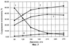 Пример 3. Степень превращения -пинена – 1 в сверхкритическом этиловом спирте в зависимости от давления (Фиг.3). Время контакта 70 сек, температура 327°С. Продукты превращения: лимонен – 2; аллооцимены – 3; – и -пиронены – 4.