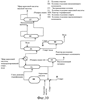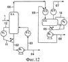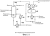 Фиг.9 показывает пример схемы для образования акриловой кислоты двухстадийным окислением с последующей реакцией со спиртом с образованием эфира акриловой кислоты. А именно, пропилен, пар и воздух подвергают двухстадийному окислению с использованием первого и второго реакторов, заполненных, например, катализатором типа молибдена, для образования газа, содержащего акриловую кислоту. Этот содержащий акриловую кислоту газ приводят во взаимодействие с водой в собирающей колонне с получением водного раствора акриловой кислоты, который экстрагируют в экстракционной колонне добавлением подходящего экстрагирующего растворителя, после чего экстрагирующий растворитель отделяют в колонне для отделения растворителя. Затем уксусную кислоту отделяют в колонне отделения уксусной кислоты с получением неочищенной акриловой кислоты и во фракционирующей колонне от этой неочищенной акриловой кислоты отделяют побочный продукт с получением очищенного продукта акриловой кислоты. Далее, эту акриловую кислоту (очищенный продукт) этерифицируют в колонне реакции этерификации и затем с использованием экстракционной колонны и колонны отделения легкого компонента получают неочищенный эфир акриловой кислоты. От этого неочищенного эфира акриловой кислоты отделяют побочный продукт (высококипящий продукт) во фракционирующей колонне с получением очищенного продукта эфира акриловой кислоты.