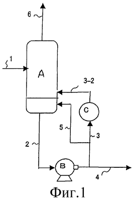 b. В качестве примера решения этой проблемы возможным является способ, в котором диаметр трубопровода для переноса жидкости нижней части уменьшают для переноса этой жидкости при высокой объемной скорости потока, но было невозможно использовать такой способ, так как насос для подобного переноса должен быть типом насоса высокого давления, являющегося экономически невыгодным для промышленного способа получения. Далее, возможным является также способ, в котором для снижения вязкости жидкости нижней части может добавляться отработанная жидкость из стадии получения или может добавляться снова вода, но это будет приводить к уменьшению температуры жидкости, посредством чего закупорка имеет тенденцию несколько ускоряться или требовать добавления такой воды в большом количестве. Таким образом, использование такого способа является практические невозможным.