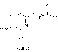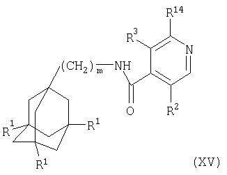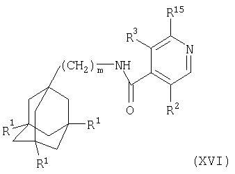 Х представляет собой атом кислорода или серы или группу >N-R8; n означает 0 или 1; R5 представляет собой С2-С3алкильную группу, возможно замещенную по меньшей мере одной гидроксильной группой; каждый из R6 и R7 независимо представляет собой атом водорода или С1-С5алкильную группу, возможно замещенную одной или двумя гидроксильными группами; R8 представляет собой атом водорода или С2алкильную группу, замещенную по меньшей мере одной гидроксильной группой; и при условиях (г), (д) и (е), указанных выше. Примеры соединений по настоящему изобретению включают: N-(1-Адамантилметил)-5-хлор-2-{3-[(3-гидроксипропил)-амино]пропил}изоникотинамид, N-(1-Адамантилметил)-5-хлор-2-{3-[(3-гидроксипропил)амино]пропил}-изоникотинамида дигидрохлорид, N-(1-Адамантилметил)-2-хлор-5-{3-[(3-гидроксипропил)амино]пропил}никотинамид, N-(1-Адамантилметил)-2-хлор-5-(3-{[(1S)-2-гидрокси-1-метилэтил]амино}пропил)никотинамид, N-(1-Адамантилметил)-2-хлор-5-(3-{[(1R)-2-гидрокси-1-метилэтил]амино}пропил)никотинамид, N-(1-Адамантилметил)-2-(3-аминопропил)-5-хлоризоникотинамида гидрохлорид, N-(1-Адамантилметил)-5-хлор-2-[3-(этиламино)пропил]изоникотинамида гидрохлорид, N-(1-Адамантилметил)-5-хлор-2-({2-[(3-гидроксипропил)амино]-этил}тио)изоникотинамида гидрохлорид, N-(1-Адамантилметил)-5-хлор-2-(3-{[(1R)-2-гидрокси-1-метилэтил]амино}пропил)изоникотинамида дигидрохлорид, N-(1-Адамантилметил)-5-хлор-2-(3-{[(1S)-2-гидрокси-1-метилэтил]амино}пропил)изоникотинамида дигидрохлорид, N-(1-Адамантилметил)-5-хлор-2-{3-[(2-гидроксиэтил)амино]пропил}-изоникотинамида гидрохлорид, N-(1-Адамантилметил)-5-хлор-2-{2-[(3-гидроксипропил)амино]этокси}изоникотинамида гидрохлорид, N-(1-Адамантилметил)-5-хлор-2-({2-[(2-гидроксиэтил)амино]этил}-амино)изоникотинамида дигидрохлорид, N-(1-Адамантилметил)-5-хлор-2-[3-(изопропиламино)пропил]изоникотинамида дигидрохлорид, N-(1-Адамантилметил)-5-хлор-2-(3-{[(2S)-2-гидроксипропил]амино}пропил)изоникотинамида дигидрохлорид, N-(1-Адамантилметил)-5-хлор-2-(3-{[(2R)-2,3-дигидроксипропил]амино}пропил)изоникотинамида дигидрохлорид, N-(1-Адамантилметил)-5-хлор-2-(3-{[(2S)-2,3-дигидроксипропил]амино}пропил)изоникотинамида дигидрохлорид, N-(1-Адамантилметил)-5-хлор-2-{3-[(4-метилциклогексил)амино]пропил}изоникотинамидадигидрохлорид, N-(1-Адамантилметил)-5-хлор-2-{3-[(2-гидрокси-2-метилпропил)амино]пропил}изоникотинамида дигидрохлорид, N-(1-Адамантилметил)-5-хлор-2-(3-{[(1R)-1-(гидроксиметил)-2-метилпропил]амино}пропил)изоникотинамида дигидрохлорид, N-(1-Адамантилметил)-5-хлор-2-(3-{[2-(метиламино)этил]амино}пропил)изоникотинамида дигидрохлорид, N-(1-Адамантилметил)-5-хлор-2-(3-{[3-(метиламино)пропил]амино}пропил)изоникотинамида бис(трифторацетат), N-(1-Адамантилметил)-5-хлор-2-[3-({2-[(2-гидроксиэтил)амино]этил}амино)пропил]изоникотинамида дигидрохлорид, N-(1-Адамантилметил)-5-хлор-2-(3-{[2-(диэтиламино)этил]амино}пропил)изоникотинамида дигидрохлорид, N-(1-Адамантилметил)-5-хлор-2-(3-{[2-гидрокси-1-(гидроксиметил)этил]амино}пропил)изоникотинамида дигидрохлорид, N-(1-Адамантилметил)-5-хлор-2-{3-[(2-гидроксиэтил)(метил)амино]пропил}изоникотинамида дигидрохлорид, N-(1-Адамантилметил)-5-хлор-2-{3-[(3-гидрокси-2,2-диметилпропил)амино]пропил}изоникотинамида дигидрохлорид, N-(1-Адамантилметил)-5-хлор-2-(3-{[(2R)-2-гидроксипропил]амино}пропил)изоникотинамида дигидрохлорид, N-(1-Адамантилметил)-5-хлор-2-({[3-(метиламино)пропил]амино}метил)изоникотинамида дигидрохлорид, N-(1-Адамантилметил)-5-хлор-2-[({2-[(2-гидроксиэтил)амино]этил}амино)метил]изоникот