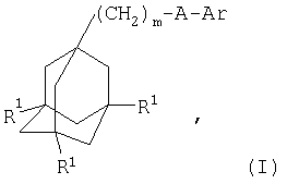 Изобретение относится к производным и промежуточным соединениям N-адамантилметила, которые обладают антагонистической активностью в отношении Р2Х7-рецептора и применяются для изготовления лекарства для использования в лечении ревматоидного артрита и обструктивного заболевания дыхательных путей. Соединения имеют формулу (I), где m означает 1, 2 или 3; каждый R1 представляет собой атом водорода; А представляет собой C(O)NH или NHC(O); Ar представляет собой группу (II), (III) или (IV), один из R2 и R3 представляет собой галоген или C1-С6алкил, а другой из R2 и R3 представляет собой атом водорода; R представляет собой группу (V), Х представляет собой атом кислорода или серы или группу >N-R8; n означает 0 или 1; R5 представляет собой C1-С5алкильную группу, которая может быть возможно замещена по меньшей мере одним заместителем, выбранным из гидроксила; каждый R6 и R7 независимо представляет собой атом водорода, C1-С6алкил (возможно замещенный по меньшей мере одним заместителем, выбранным из гидроксила и (ди)-С1-С4алкиламино (который сам возможно замещен по меньшей мере одной гидроксильной группой)) или С3-С8циклоалкил (возможно замещенный по меньшей мере одним заместителем, выбранным из гидроксила); и R8 представляет собой атом водорода или С1-С5алкильную группу, которая может быть возможно замещена по меньшей мере одним заместителем, выбранным из гидроксила; при условии, что: (а) когда n означает 0, тогда А представляет собой NHC(O), и (б) когда n означает 1, Х представляет собой кислород, и А представляет собой C(O)NH, тогда R6 и R7 не являются оба одновременно атомом водорода или не являются оба одновременно незамещенным С1-С6алкилом, или когда один из R6 и R7 представляет собой атом водорода, тогда другой из R6 и R7 не является незамещенным С1-С6алкилом; и (в) когда n означает 1, Х представляет собой кислород, серу или >NH, и А представляет собой NHC(O), тогда R6 и R7 не являются оба одновременно атомом водорода или не являются оба одновременно незамещенным C1-С6алкилом, или когда один из R6 и R7 представляет собой атом водорода, тогда другой из R6 и R7 не является незамещенным С1-С6алкилом или -СН2СН2ОН; или его фармацевтически приемлемые соль или сольват. Изобретение также относится к способам (вариантам) получения соединений формулы (I), фармацевтической композиции, фармацевтической композиции, содержащей соединение формулы (I), способу ее получения, к применению соединения формулы (I) и способам лечения ревматоидного артрита, остеоартрита или обструктивного заболевания дыхательных путей. 18 н. и 12 з.п. ф-лы.