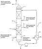 На чертеже не показана обычная схема производства оксида этилена путем окисления этилена молекулярным кислородом и обычная система извлечения оксида этилена водой. Эти операции хорошо известны и широко применяются в промышленной практике.