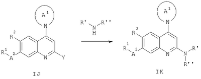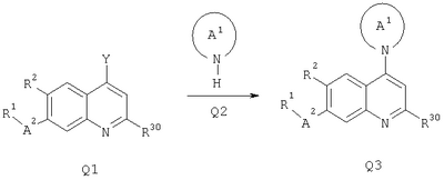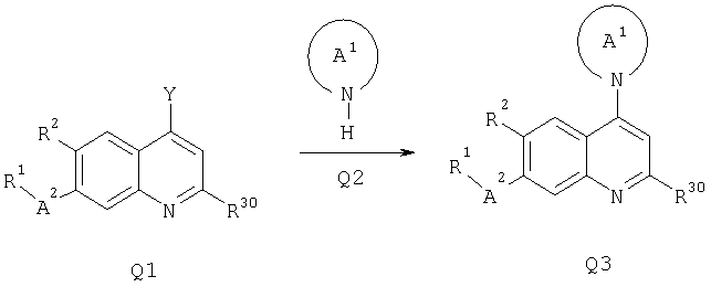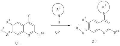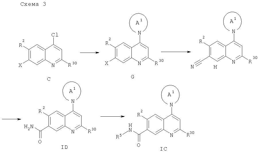 где R3 присоединен в положении 2 и R2 присоединен в положении 6. Предпочтительными являются соединения формулы I и их фармацевтически приемлемые соли. Особенно предпочтительными являются соединения формулы I. Предпочтительными являются соединения формулы I, в которых R1 обозначает -O-R4 или -NR5R6; R2 обозначает водород, алкил, циклоалкил, алкокси, галоген, гетероциклил или амино; R3 обозначает водород, алкил, амино или галоген; R4 обозначает водород, алкил, циклоалкил, арил, аралкил, циклоалкилалкил, алкоксиалкил, гидроксиалкил или гетероциклил; R5 и R6 независимо друг от друга выбирают из ряда, включающего водород, алкил, циклоалкил, арил, аралкил, циклоалкилалкил, алкоксиалкил, гидроксиалкил и гетероциклил; или R5 и R6 вместе с атомом N, к которому они присоединены, образуют 5-10-членное гетероциклическое кольцо, необязательно содержащее второй гетероатом, выбранный из азота, кислорода или серы, и где гетероциклическое кольцо необязательно замещено одним или несколькими заместителями, независимо друг от друга выбранными из алкила и алкокси; А1 обозначает 5-7-членное насыщенное гетероциклическое кольцо, содержщее атом азота, который присоединен к хинолиновому кольцу, и необязательно второй гетероатом, выбранный кислорода, серы или азота, и где кольцо необязательно замещено 1-3 заместителями, независимо друг от друга выбранными из ряда, включающего алкил, алкокси, гидрокси, гидроксиалкил, алкоксиалкил, амино, ацетиламино и циано; А2 обозначает -СН2-или -С(O)-; и их фармацевтически приемлемые соли и сложные эфиры. Предпочтительными являются соединения формулы I, в которых R2 обозначает водород, алкил, алкокси или галоген. Особенно предпочтительными являются соединения формулы I, в которых R2 обозначает водород или метил. Наиболее предпочтительными являются соединения формулы I, в которых R2 обозначает водород. Также предпочтительными являются соединения формулы I, в которых R1 обозначает -O-R4. Другим предпочтительным объектом настоящего изобретения являются соединения формулы I, в которых R1 обозначает -NR5R6. Предпочтительными являются также соединения формулы I, в которых R3 обозначает водород, метил, метиламино, диметиламино или хлор. Предпочтительными являются также соединения формулы I, в которых R3 обозначает водород или алкил. Более предпочтительно алкил. Еще более предпочтительно метил и этил. Наиболее предпочтительно метил. Предпочтительными являются также соединения формулы I, в которых R4 обозначает водород, алкил, арил, алкоксиалкил или гетероциклил. Особенно предпочтительными являются соединения формулы I, в которых R4 обозначает водород, алкил, алкоксиалкил, пиридинил, пирролидинил, тетрагидропиранил, фенил, фенил, замещенный 1-3 заместителями, независимо друг от друга выбранными из ряда, включающего алкил, циано, трифторметил, алкокси, галоген, пирролидинилкарбонил и нитро. Особенно предпочтительными являются соединения формулы I, в которых R4 обозначает водород, алкил, алкоксиалкил, пиридинил, пирролидинил, фенил, фенил, замещенный 1-3 заместителями, независимо друг от друга выбранными из ряда, включающего алкил, циано, трифторметил, алкокси, галоген, пирролидинилкарбонил и нитро. Предпочтительными являются соединения формулы I, в которых R5 и R6 независимо друг от друга выбирают из ряда, включающего водород, алкил, арил или алкоксиалкил, или R5 