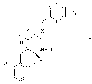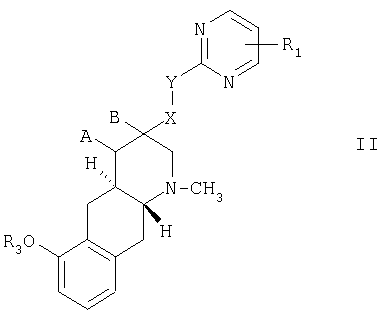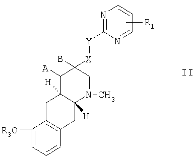 где А и В каждый означает Н или вместе образуют дополнительную связь, Х означает СН2 или СО, Y означает О, S, NR2 (где R2 означает Н или С1-С4алкил), СН2 или О-СН2, а R1 означает Н или С1-С4алкил, в форме свободного основания или кислотно-аддитивной соли. Вышеуказанные алкильные группы предпочтительно означают метил. Если А и В каждый означает Н, заместитель X-Y-пиримидин предпочтительно имеет конфигурацию 3R. Х предпочтительно означает СН2. Y предпочтительно означает О или S, более предпочтительно S. R1 предпочтительно означает метил, более предпочтительно метил в положении 4 вышеуказанного пиримидина. В предпочтительном варианте осуществления изобретения А и В каждый означает Н, Х означает СН2, Y означает S, а R1 означает метил. Другим объектом изобретения является способ получения соединений формулы I и их кислотно-аддитивных солей, включающий превращение алкоксигруппы в соединении формулы II