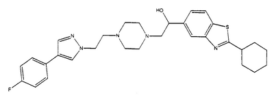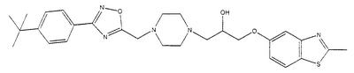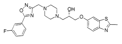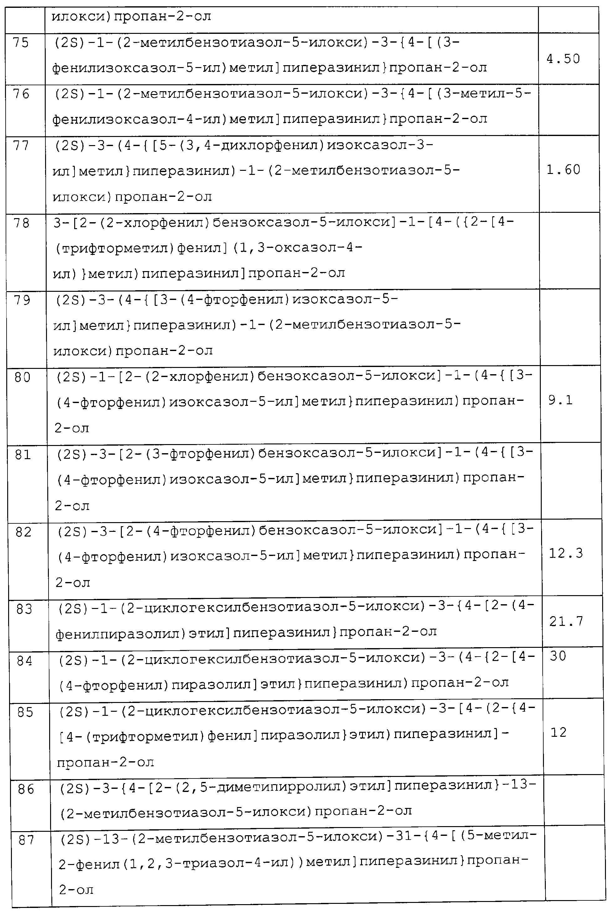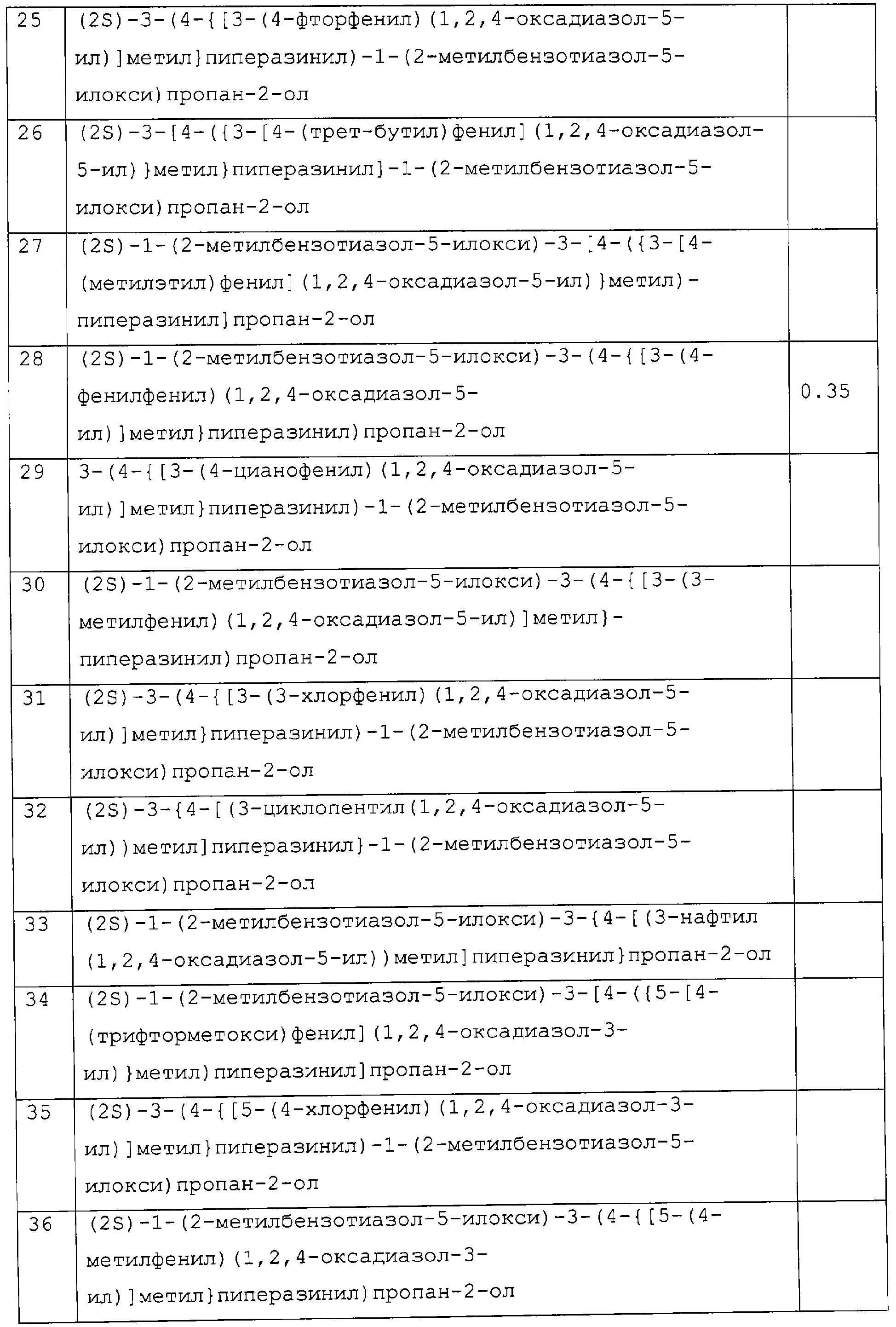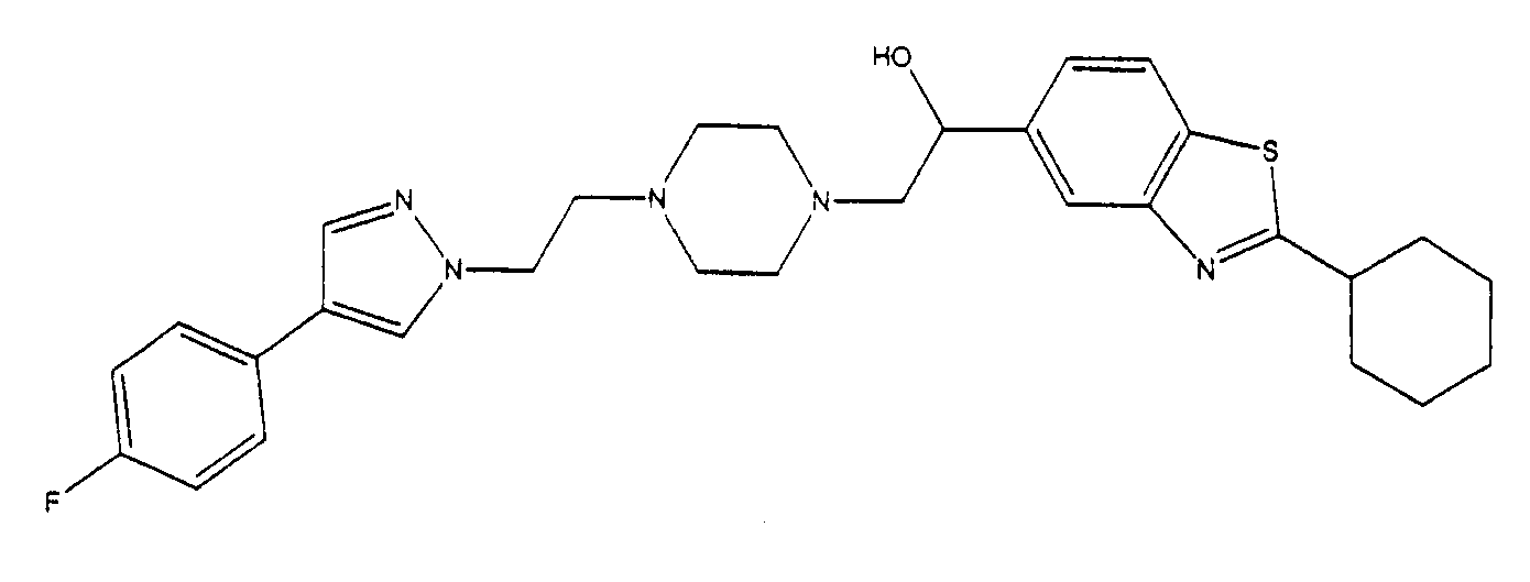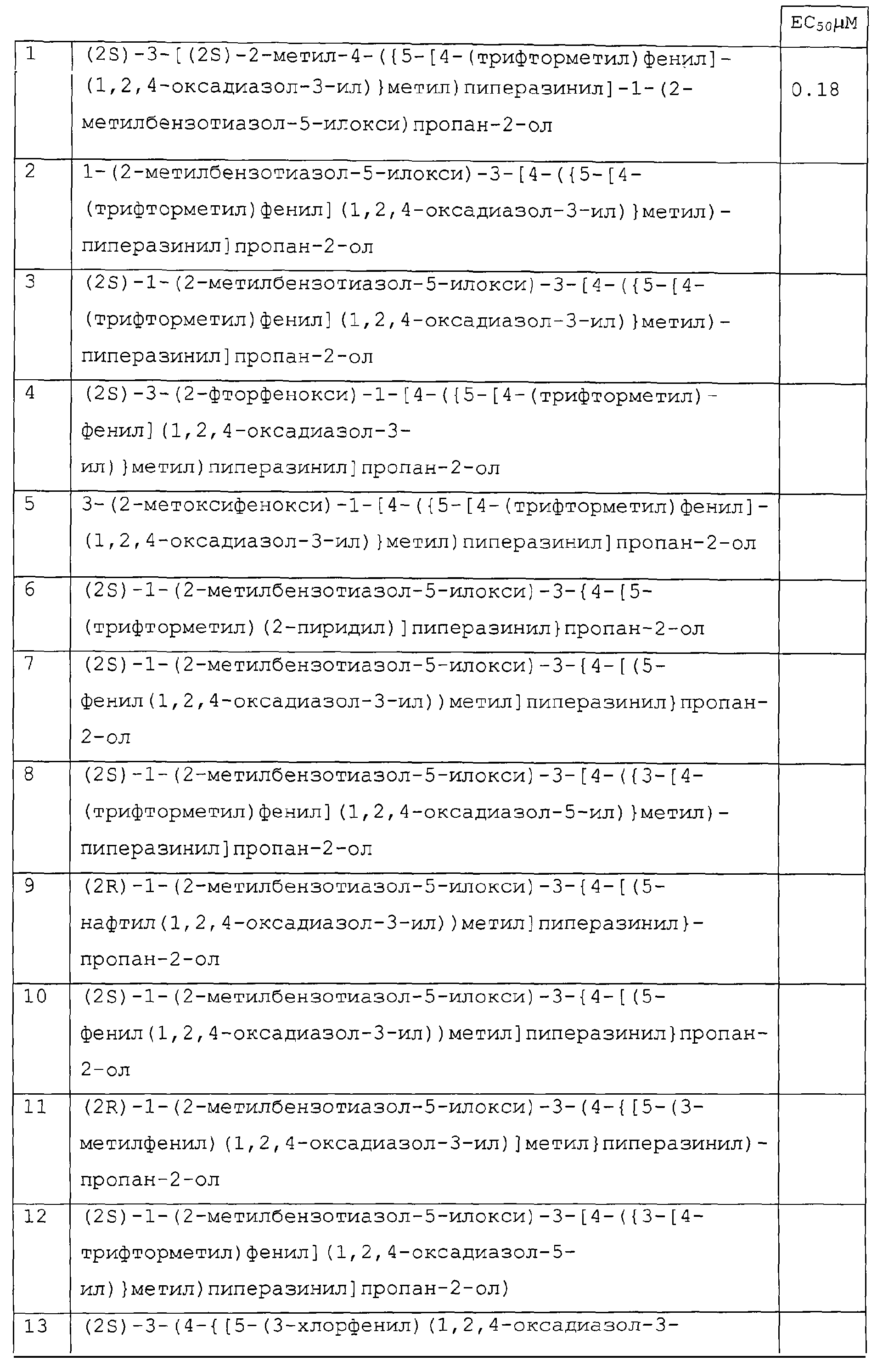 представляет коммерчески доступный [(1S,4S)-(+)-2,5-диазабицикло[2.2.1]гептан] или его можно получить по методике, раскрытой в J. Org. Chem., 1990, 55, 1684-7. Аналогично предшественник соединения формулы (4), где R1 и R5, взятые вместе, представляют мостиковую этиленовую группу, и предшественник соединения формулы (4), где R1 и R7, взятые вместе, представляют мостиковую этиленовую группу, можно получить по опубликованной методике, раскрытой в J. Med. Chem., 1974, 17, 481-7. Предшественник соединения формулы (4), где R1, R2, R3, R4, R5, R6 и R7 представляют водород и R8 представляет -C(O)NH2, получают из пиперазин-2-карбоксамида, коммерчески доступного соединения. Стадия 1 – Получение соединения формулы (3) Соединение формулы (3) обычно получают путем взаимодействия соединения формулы (1), например 5-гидрокси-2-метилбензотиазола, с эпоксидом формулы (2). Обычно два соединения смешивают в инертном растворителе, предпочтительно кетоне, например ацетоне, и в присутствии третичного органического основания или неорганического основания, предпочтительно карбоната кальция при температуре около температуры кипения с обратным холодильником в течение примерно 8-48 ч, предпочтительно в течение ночи. Когда взаимодействие по существу закончено, выделяют продукт формулы (3) обычными способами, например фильтрованием, удалением растворителя при пониженном давлении с последующей хроматографией остатка на силикагеле. В альтернативном случае после фильтрования продукт можно кристаллизовать из фильтрата. Стадия 2 – Получение соединения формулы (5) Далее соединение формулы (3) подвергают взаимодействию с защищенным пиперазином формулы (4). Обычно два соединения смешивают в инертном растворителе, предпочтительно галогенированном растворителе, например метиленхлориде, необязательно в присутствии катализатора, например трифторметансульфоната иттербия (III). В присутствии катализатора взаимодействие проводят примерно при 0-30°С, предпочтительно при комнатной температуре в течение примерно 8-48 ч, предпочтительно в течение ночи. В отсутствие катализатора смесь кипятят с обратным холодильником в течение такого же периода времени в этаноле в присутствии триэтиламина. Когда взаимодействие по существу закончено, выделяют продукт формулы (5) обычными способами, например удаляя растворитель при пониженном давлении с последующей хроматографией остатка на силикагеле. Стадия 3 – Получение соединения формулы (6) Далее с соединения формулы (5) снимают защиту посредством гидролиза трет-бутилового сложного эфира. Обычно соединение формулы (5) растворяют в смеси инертного растворителя, предпочтительно галогенированного растворителя, например метиленхлорида, и сильной кислоты, например трифторуксусной кислоты. Взаимодействие проводят примерно при 0-30°С, предпочтительно при температуре около комнатной в течение примерно 8-48 ч, предпочтительно в течение ночи. Когда взаимодействие по существу закончено, выделяют продукт формулы (6) обычными способами, например добавляя основание для удаления избытка кислоты и удаляя растворитель при пониженном давлении. Стадия 4 – Получение соединения формулы I Далее соединение формулы (6) подвергают взаимодействию с соединением формулы (7) (X1-Y-Z1-Hal), например 3-(4-трифторметилфенил)-5-хлорметил-1,2,4-оксадиазолом. Обычно два соединения смешивают в инертном растворителе, предпочтител