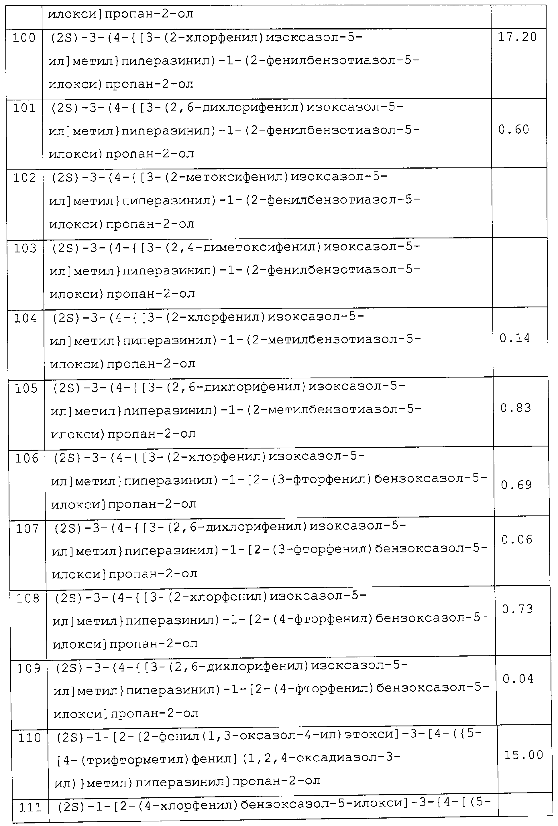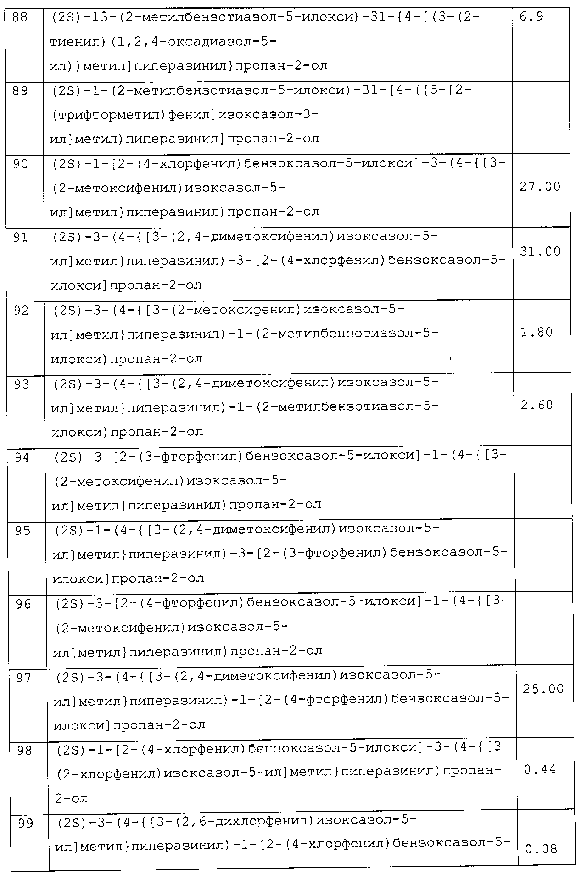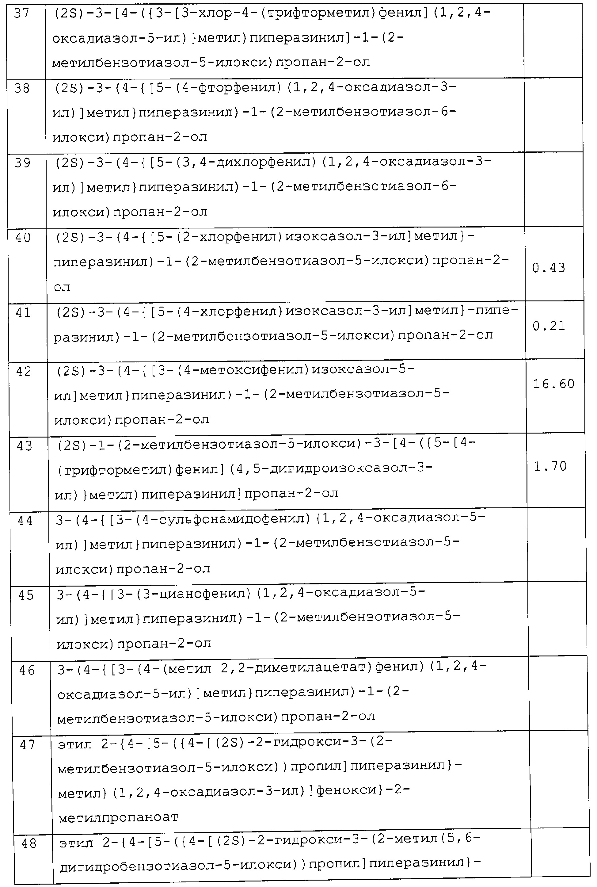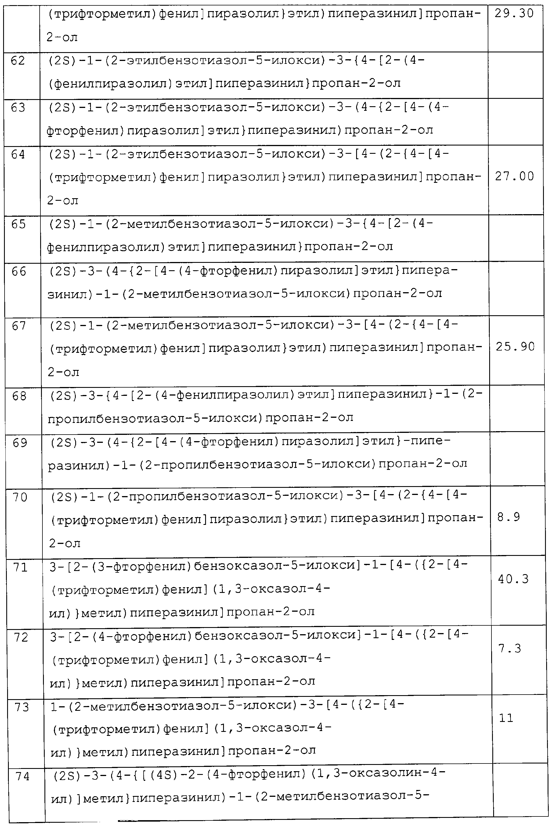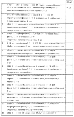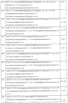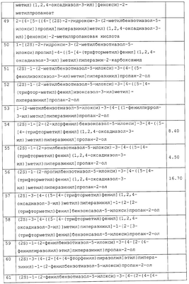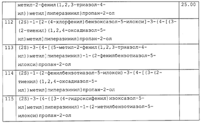 Препараты пролонгированного действия данного изобретения получают следующим образом: соединение, рН-зависимый связующий агент и необязательные наполнители тщательно смешивают (в сухом виде). Затем смешанную в сухом виде смесь гранулируют в присутствии водного раствора сильного основания, которое распыляют в смешанный порошок. Гранулят сушат, просеивают, смешивают с необязательными лубрикантами (такими, как тальк или стеарат магния) и прессуют в таблетки. Предпочтительными водными растворами сильных оснований являются растворы гидроксидов щелочных металлов, таких как гидроксид натрия или калия, предпочтительно гидроксид натрия, в воде (необязательно содержащие до 25% смешивающихся с водой растворителей, таких как низшие спирты). Полученные таблетки необязательно могут быть покрыты образующим пленку агентом для идентификации, маскировки вкуса и повышения легкости глотания. Образующий пленку агент обычно присутствует в количестве от 2 до 4% от массы таблетки. Подходящие агенты, образующие пленку, хорошо известны специалистам в данной области и включают гидроксипропилметилцеллюлозу, катионные метакрилатные сополимеры (сополимеры диметиламиноэтилметакрилат/метил-бутилметакрилат – Eudragit® E – Röhm. Pharma) и подобные. Данные агенты, образующие пленку, могут необязательно содержать красители, пластификаторы и другие дополнительные ингредиенты. Полученные прессованием таблетки предпочтительно имеют твердость, достаточную, чтобы выдерживать сжатие 8 Kp. Размер таблетки зависит, в первую очередь, от количества соединения в таблетке. Таблетки включают от 300 до 1100 мг соединения в виде свободного основания. Предпочтительно таблетки включают 400-600 мг свободного основания, 650-850 мг и 900-1100 мг. Чтобы влиять на скорость растворения, регулируют время, в течение которого порошок, содержащий данное соединение, смешивают во влажном виде. Предпочтительно, чтобы общее время смешивания порошка, то есть время, в течение которого порошок подвергают действию раствора гидроксида натрия, составляло от 1 до 10 мин и более предпочтительно от 2 до 5 мин. После гранулирования частицы удаляют из гранулятора и помещают в сушилку с псевдоожиженным слоем для сушки при температуре около 60°С. ПРИМЕР 21 Исследование на митохондриях Выделяют митохондрии сердца крысы способом Nedergard и Cannon (Methods in Enzymol., 55, 3, 1979). Окисление пальмитоил СоА: окисление пальмитоил СоА проводят в общем объеме 100 мкл, содержащем следующие агенты: 110 мМ KCl, 33 мМ буфера Tris с рН 8, 2мМ KPi, 2 мМ MgCl2, 0,1 мМ ЭДТА, 14,7 мкМ обезжиренного BSA, 0,5 мМ яблочной кислоты, 13 мМ карнитина, 1 мМ ADP, 52 мкг митохондриального белка и 16 мкМ 1-С14 пальмитоил СоА (удельная активность 60 мКю/ммоль; 20 мкКю/мл, используя 5 мкл на исследование). Соединения данного изобретения добавляют в раствор ДМСО при следующих концентрациях: 100 мкМ, 30 мкМ и 3 мкМ. В каждом исследовании используют контроль ДМСО. Через 15 мин ферментативной реакции при 30°С смесь центрифугируют (20000 g в течение 1 мин) и добавляют 70 мкл супернатанта в колонку с кремниевой кислотой и активированной обращенной фазой (примерно 0,5 мл кремниевой кислоты). Колонку элюируют 2 мл воды и используют 0,5 мл элюента для подсчета сцинтилляций с целью определения количества С14, захваченного в виде С14-бикарбонатного иона. В данном исследовании соединения данного изобретения демонстрируют а