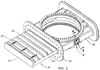 На Фиг.2 показана другая часть системы, в которой узел 32 уплотнения затвора размещен внутри корпуса 22 клапана. На Фиг.3 показан узел в разобранном виде, который содержит крышку 34 уплотнения, направляющий стакан 36, нагрузочную пружину 38, пластину 40 уплотнения и уплотнение 42 затвора. Крышка 34 уплотнения используется для удержания элементов внутри корпуса 22 клапана. Направляющие стаканы 36 служат для направления движения уплотнения 42 затвора, которое свободно перемещается в них и взаимодействует с боковыми сторонами заслонки. Так как уплотнение между уплотнением 42 затвора и боковой стороной заслонки является не идеальным, нагрузочные пружины 38 создают усилие, действующее на уплотнение 42 затвора, обеспечивающее прижим, предотвращающий, или, по крайней мере, уменьшающий утечку пара через это уплотнение. Так как в корпусе 22 клапана внутренние элементы постоянно находятся под избыточным давлением для предотвращения проникновения потока загрязняющих частиц из барабана в корпус клапана, срабатывание заслонки обеспечивает стравливание давления из полости корпуса, находящегося под давлением, через входное и выходное отверстия клапана. Эта потеря давления может привести к отрицательному пределу по давлению пара, проходящему из барабана в полость корпуса. Уплотнение 42 затвора предотвращает утечку этого пара, или, по крайней мере, делает эту утечку минимальной. Таким образом, полость корпуса клапана остается под избыточным давлением по отношению к давлению в барабане.