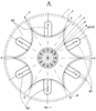 Отражающая ось 4 с отражателями 5 представляет собой в поперечном сечении шестилучевую звезду, лучи которой совпадают по расположению с лучами шестилучевой звезды крышек 2, а шестилучевая звезда в поперечном сечении излучателей 11 повернута относительно выше упомянутых звезд на 30 угловых градусов. Угловые расстояния между лучами всех шестилучевых звезд одинаковы и равны 60 угловым градусам, фиг.1, 3.