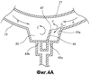 На фиг.4А и 4В показан вид в разрезе и перспективный вид участков вокруг выпускных отверстий для воды 49а и 49b, выполненных соответственно в сливном желобе 30. Выпускные отверстия для воды 49а и 49b имеют направляющую поверхность 48 направляющего элемента 47, расположенную между ними. Остальные элементы конфигурации идентичны описанным в первом варианте реализации изобретения, так что они не будут обсуждаться, в то время как им присвоены аналогичные ссылочные позиции.
