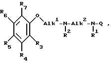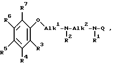 ![]() где R3 является метокси, этокси, изопропоксигруппой; R4 является водородом; R5 является водородом; R6 является хлором, фтором или метилом; R7 является водородом; R1 является водородом; R2 является водородом или метилом; Alk1 является 1,2-этандиилом или 1,3-пропандиилом; Alk2 является 1,2-этандиилом или 1,3-пропандиилом; Q является радикалом формулы (вв), где R12 является водородом и R13 является 4-аминокарбонилом; или где R3 является метокси; R4, R5, R6, R7 является водородом; Alk1 является этандиил; R2 является водородом; Alk2 является этандиилом; R1 является водородом; Q является С(=NН)-NН, для получения лекарственного средства для лечения состояний, связанных с расширением сосудов. 2. Соединение общей формулы I’ ![]() их фармацевтически приемлемые соли кислотного присоединения и стереохимические изомерные формы, где R1 и R2 каждый независимо содержит водород или С1-6алкил; R3 – С1-6алкил, гидрокси, циано, галоген, С1-6алкилокси, арилокси, арилметокси, С2-6алкенил, С2-6алкинил, С1-6алкил -S-, С1-6алкил (S=О)-, С1-6алкилкарбонил; R4 – водород, галоген, гидрокси, С1-6алкил, или С1-6алкилокси, или R3 и R4, взятые вместе, образуют двухвалентный радикал формулы: -СН=СН-СН=СН- (а), -(СН2)n– (b), -(СН2)m-Х- (с), -Х-(СН2)m– (d), -СН=СН-Х- (е), -Х-СН=СН- (t), -О-(СН2)t-Y- (g), -Y-(СН2)t-О- (h), -(СН2)t-Z- (i), в этих двухвалентных радикалах один или два атома водорода могут замещаться С1-6алкилом; каждый Х независимо -О-, -S-, -S(О)-, -S(О)2-, -С(О)-; n = 3 или 4; каждый Y независимо -О-, -S-, -S(О)-, -S(О)2-, -С(О)-; m = 2 или 3; каждый Z -О-С(О)-, -С(О)-О-, -О-S(О)2-; t = 1 или 2; R5 и R6 каждый независимо водород, галоген, гидрокси, С1-6алкил, С1-6алкилокси, арилокси или арилметокси; R7 – водород; Alk1 – С2-5алкандиил; Alk2 – С2-15алкандиил; Q – радикал формулы ![]() в которых R9 – водород, циано, аминокарбонил или С1-6алкил; R10 – С1-6алкил, С3-6алкенил, С3-6алкинил; R11 – водород или С1-6алкил; R12, R13 каждый независимо водород, гидрокси, галоген, С1-6алкил, С1-6алкилокси, С1-6алкилтио, g = 2, R16 и R17 – оба водород; R18 – водород или С1-6алкил. 3. Соединение по п.2, в котором R3 – С1-6алкил, гидрокси, С1-6алкилокси, арилокси, арилметокси, С2-6алкенил, С2-6алкинил, один из R4, R5 и R6 – водород и другие каждый независимо – водород, галоген, гидрокси, С1-6алкил, или С1-6алкилокси, Q – радикал формулы (aa), (bb), (dd). 4. Соединение по п.2, в котором R3 и R4, взятые вместе, образуют двухвалентный радикал формулы -СН=СН-СН=СН- (а), -(СН2)n– (b), -(СН2)m-Х- (с), -Х-(СН2)m– (d), -СН=СН-Х- (е), -Х-СН=СН- (t), -О-(СН2)t-Y- (g), -Y-(СН2)t-О- (h), -(СН2)tZ- (i) в этих двухвалентных радикалах один или два атома водорода могут замещаться С1-6алкилом; Х, Y, Z, m, n – те же, что определены в п.2, в двухвалентных радикалах формулы (g) и (h) t = 2, Q – радикал формулы (aa), (bb), (dd). 5. Соединение по п.2, в котором R1 и R2 – водород. 6. Соединение по п.2, в котором соединение представляет собой N-[2-(2,3-диметоксифенокси)этил]-N’-2-пиримидинил-1,3-пропандиамин; 2-[2-[[3-(2-пиримидиниламино)пропил]амино]этокси]фенол; N-[2-(2,3-диметоксифенокси)] -N’-(1,4,5,6-тетрагидро-2-пиримидинил)-1,3-пропандиамин; N-[2-(2-диметоксифенокси)этил] -N’-(1,4,5,6-тетрагидро-2-пиримидинил)-1,3-пропандиамин; N-[2-(2-этоксифенокси)этил] -N’-(1,4,5,6-тетрагидро-2-пиримидинил)-1,3-пропандиамин; N-[3-(2-метоксифенокси)пропил] -N’-(1,4,5,6-тетрагидро-2-пиримидинил)-1,3-пропандиамин; N-2-[(2,3-дигидро-1,4-бензодиоксин-5-ил)окси] этил]-N’-2-[(2,3-дигидро-1,4-бензодиоксин-5-ил)окси]-этил]-N’-2-пиримидинил-1,3-пропандиамин; N-[2-[(2,3-дигидро-1,4-бензодиоксин-5-ил)-окси] этил] -N’-(1,4,5,6-тетрагидро-2-пиримидинил)-1,3-пропандиамин; N-[2-[(2,3-дигидро-1,4-бензодио