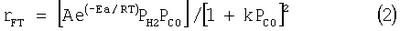 rFT выражает число молей СО, превратившихся в продукты синтеза Фишера-Тропша в единицу времени на единицу массы предшественника катализатора в его предвосстановленном состоянии.