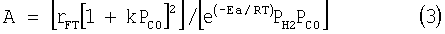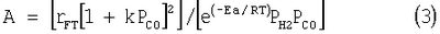 c) Преэкспоненциальный фактор А, применимый для Ах и Аx,b определяется из общепринятого эмпирического кинетического уравнения для кобальтсодержащих катализаторов Фишера-Тропша: