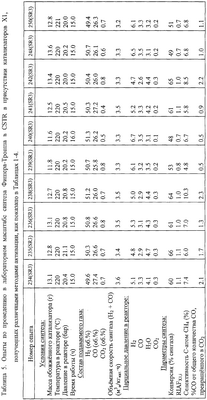10-30 г полученного восстановленного катализатора с частицами 38-150 мкм суспендировали в 300 мл расплавленного воска и загружали в CSTR с внутренним объемом 500 мл. Подаваемый газ состоял из водорода и моноокиси углерода в молярном соотношении Н2/СО от 1,5/1 до 2,3/1. Реактор нагревали при помощи электричества и для устранения ограничений в массопередаче газ-жидкость перемешивали мешалками с достаточно высокой скоростью. Подаваемый поток регулировали при помощи регулятора потока Brooks, использовали объемные скорости от 2 до 4 м3 н/кгкат·ч. Для характеристики спектра продуктов использовали ГХ газов, а также летучих головных углеводородов.