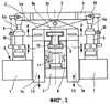 Другая конструкция (EP 0026903) переносит усилие осевого сдвига расположенных снаружи параллельных блоков поршневых цилиндров на главную балку через действующие параллельно с обеих сторон зажимные плиты и блок поршневых цилиндров для высвобождения зажимных плит, когда конструкция валка должна быть демонтирована. Здесь третий блок поршневых цилиндров имеет только функцию замены. Несмотря на это, здесь также не предусмотрены никакие меры при сбоях гидравлики или электричества для защиты балки.