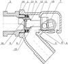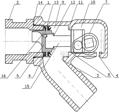 Изобретение поясняется описанием конкретного примера его выполнения и прилагаемым чертежом, где схематично изображен концевой кран воздушной магистрали подвижного состава, в разрезе (в закрытом положении).