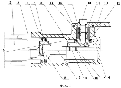 фиг.1 схематично изображен концевой кран воздушный магистрали подвижного состава, в разрезе (в закрытом положении);