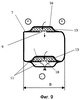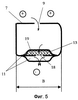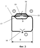 На фиг.3 представлена схема поперечного сечения полого участка пустотелого силового элемента кузова (в частности, порога пола кузова), герметично ограниченного на концах двумя акустическими заглушками, содержащего с внешней стороны порога пола (со стороны дорожного покрытия) сквозное эжектирующее дренажное отверстие, выполненное в виде локальной отогнутой щелевой просечки стенки порога кузова, а с внутренней стороны порога пола (со стороны пассажирского салона) – на внутренней и внешней поверхностях его верхней стенки установлены спаренные, с общей разделительной перегородкой, трубчатые перепускные воздушные каналы, по крайней мере, один из которых интегрирован с пористой воздухопроницаемой вставкой поглотителя высокочастотного звука, дополнительно повышающие звукоизоляцию канала связи между пространством пассажирского салона (кабины) и зашумленным пространством под полом кузова за счет введения дополнительных звукоизолирующих перегородок со смещенными осями отверстий относительно дренажного отверстия 10 и введения общей разделительной перегородки, содержащей, в свою очередь, промежуточное отверстие 15 со смещенной осью относительно отверстий 9 и 14, образующих комбинированную сообщающуюся двухкамерную систему расширительных шумозаглушающих камер.